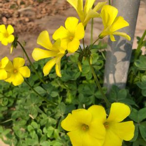 オオキバナカタバミさん💛💛💛 庭の東側で咲いてました☺️ 何故か倒れて咲くんですよね〜🤣