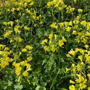 【オオキバナ カタバミ・大黄花片喰】 学名:Oxalis pes-caprae おはようございます🪆⚪︎⚪️⚪︎◯⚪️ どうぞ皆様も良き一日を 属名:Oxalisはギリシャ語の「oxys(酸っぱい)」に由来。この属の植物にはシュウ酸塩を含み酸っぱいものが多い事からきている。種小名のpes-capraeは「山羊の足」と意味。先が割れた形を例えてる。花言葉は「輝く心」。こちらは様々な葉っぱを楽しむ場所🤍輝いてきた🐈♪