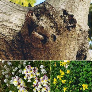 おはようございます😊 散歩路🚶♀️より お顔さて何に見えますか⁉️ 思わず笑ってしまいました😱😅かすかな香りが(左側ネメシア)と💛の花が春らしい🎶💕😍ですねぇ🍀