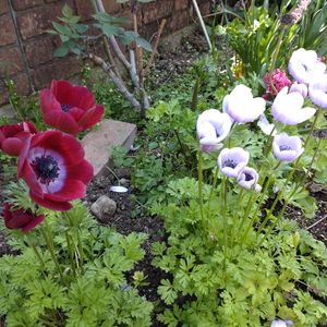 チーム神花園さんのアネモネ こんばんは! 午前中に用事があって時間が無いけどチョコレートダブルとシフォンダブルをどうしても植えつけてから外出したい!ってことで朝の8時から植え付けしてました😂 たぶんうるさくは無かったはず😅 夕方帰宅後、水切れチェックをしつつ同じく神花園さんのところのプレミアムアネモネ達から第二弾の蕾たちが咲き出したので一緒にチーム神花園アネモネでpicにおさめました😄🌸 ラナンキュラスも素敵ですがアネモネ最高です🥰 せっかくのお気に入りのアネモネ達なので土の中のままで夏越し難しいのかなー掘り上げるべき?っとひたすら考えてます😂