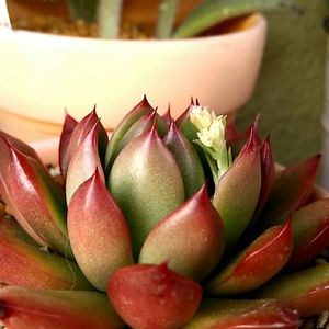 ここにもおめでたい紅白の鉢が😅 去年まさかのダブり買いしてしまったメキシココロラータ✕ラウイ 11月19日のpicでは同じ顔しているのに どういう訳か今は違う顔しています😲 土は全く同じもの使っていて置き場も常に一緒💦 多肉ちゃんはホントに謎だらけ♡ 今となってはダブり買いもラッキーだったかな😅 隣のロイローザは顔色ひとつ変えてません😥 🎼ふ〜たり並んですまし顔〜 なので森のおひな祭りに参加です🤗