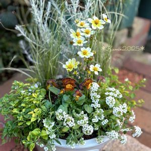 11月に投稿していた寄せ植え 斑入りのバコパが たくさん花をつけました⸝⸝⸝˘◡˘♡ 🏷️白い水曜日♡ 参加させてください❁.。.:*:.。.✽.。.:*:.。.