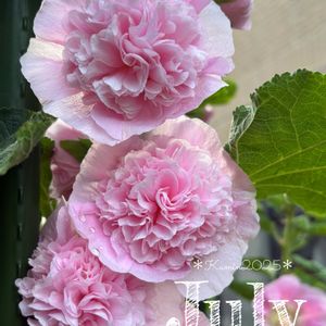 八重咲のタチアオイです 優しいアプリコット色のラベルに魅せられて 植えること2年… 全く違う色で咲いてきました≡︎(;゚Д゚)・。゚ しかも先月の19日に投稿していた時は 咲き始めの姿が八重ではなくて ちょっとがっかりしてたんですよね でも別の茎から本領を発揮し出しましたよ〜! なんと2メートル越えの茎もあります💦 驚きの7月です‼️ 今月もよろしくお願いします(❁ᴗ͈ˬᴗ͈)⁾⁾⁾ᵖᵉᵏᵒ ❁.。.:*:.。.✽.。.:*:.。. ❁.。.:*:.。.✽.。.:*:.。. 2枚目は孫の作品です 私の撮影道具のいつものチェアー お飾りしようとタチアオイを数個乗せてやると どうやら違うようで… たくさん摘んだタチアオイではなくて 大好きなヒペリカムを大事に乗せました( *ˊᗜˋ)ノꕤ*.゚