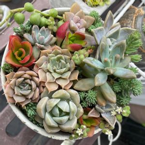 おはようございます 5日に撮った放ったらかしの 寄せ植え😊 セダムもりもりでお花も満開✨ いつの間にか可愛くなって いたので記念に一枚🎶