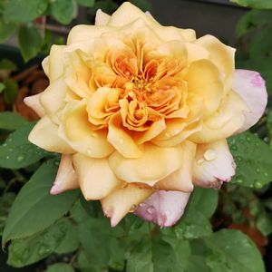 こんにちは☔️ 今朝は晴れ間もあったのに、本降りになってきました😥 我が家のバラ開花No.23は、和バラ「絃(げん)」です🌹🌿 形が「雅」とそっくり~と思ったら、兄弟?姉妹?枝変わり?のようですね💕 「絃」はオレンジ系ですが、咲き進むと少しピンクがかってきました💛💗