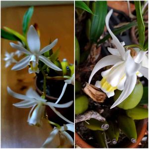 おはようございます。 セロジネです。 向かって右はインターメディア。お花は少し大きめ、花びらもフリルがあり華やかです。左は種類が違うようです。ひとまわり小さなお花、花弁はシャープ、東洋欄に似ています。日中にはとてもいい香りが漂います。