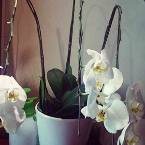 ふい~💦 マスク暑いなー(; ̄ー ̄A 貰ってきた胡蝶蘭3本仕立て🎉✨ 真っ白と聞いてたから、家にあるのとは品種が違うと思ってたけどたぶん一緒だね~😂 これで白胡蝶蘭が6株になった(゜ロ゜) 冬の置き場どうしようか(((((゜゜;)