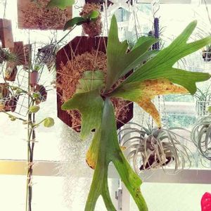 コウモリランのリニューアル完了(`・ω・´)ゞ 右が尻尾だったやつ☺️ 絵馬(大)に付けたよ( *´艸`)💕 左はセール品で瀕死だったのが無事に復活したから枝に付けてみた😆 本命はまた後日( -∀・)🎶