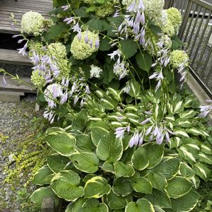 アナベルとホスタ アナベルは昨年かなり切り戻ししたんだけど大きく育っています。