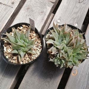 おじ様ハウス産 いくつか買ったうちの1つ💓 ハオルチア属 『祝宴錦』 Haworthia turgida 左が購入した物なのですが、水が切ってあるので斑入り具合いもまだわかりません!😅 プリプリさせるの楽しみです✨🌱😘 そして、右側が今回の『オマケ』 オマケのが大きくないですか❓🤣 処分する予定だったからあげる!あげる!って🤭 おじ様優しい✨😍 植え替え作業を邪魔しない適度に通わせて貰います🌵🚘