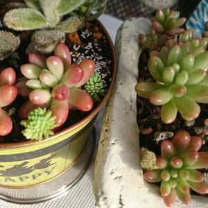 最近のセダムは、運動不足なのか?発育がいいのか?お家柄?左は昨日あまりに粒が丸々してたので、買っちゃったオーロラ。 右はうちに住み着いて2年目かな、あんまり元気が無いです。