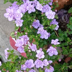 バコパ 左…コピア🌸ピンク 右…パープルビーズ 小苗 2ポット 出先で立ち寄ったお花屋さんにて購入 ☆匍匐性 宿根 小花 に惹かれて‼︎ 移動続きで レジ袋に3苗は、窮屈😣 ピンクの花はひとつだけになってしまった