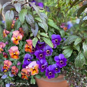 冬越しして3年目を迎える 夕霧草✨ 葉っぱも生き生きして来ました🌿 名無しのお安いビオラ達2色も 元気で可愛いです🧡💜✨ 夕霧草をメインに小花を植え替えています♡ 記録用 との連投です(*ᴗ͈ˬᴗ͈)⁾⁾⁾スミマセン