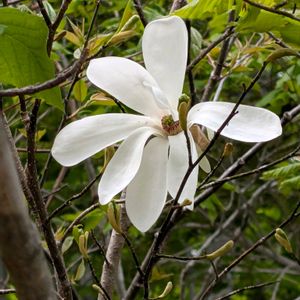 六甲山にて シデコブシ コブシとタムシバの違いは コブシには1枚、葉っぱが付いてるらしい。 そこは撮っていません。 2枚目はタムシバ 上る途中で至る所に、ティシュの様な花が咲いています。 園内の名札はタムシバでした。