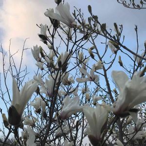 朝日に向かって コブシ ホームセンターで 姫コブシとして買った苗が 数年で巨木になりました イロイロ調べると マグノリア ‘ワダスメモリ’ という品種のようです コブシとタムシバの交配種