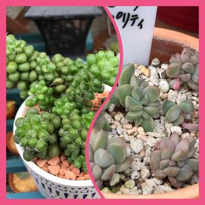 みちのすけちゃん&みらいさんの 🏷つぶつぶの日 参加します❣️ 左📷 ミドリんになってる茶傘😆 ☀️不足かな? 桜吹雪の仲間💕 右📷 ピンクプリティの葉挿しっ子達💕 葉挿しアルアルの、多頭軍団になりそう😅 午後から楽しいお出かけの為に、朝からフル回転😆 通常とのヤル気の違い🤣