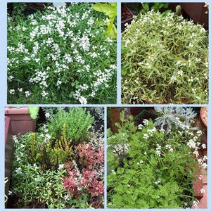 ;(´•௰•`)☂から始まった10月❣️ 今朝の庭のアリッサム💕 涼しくなって、地植えや昨年の寄植えから、今年用によけていた花材鉢の子も、元気に開花😁