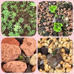 目覚めの秋ヾ(´︶`♡)ノ 左上📷 オキザリス♡桃の輝き 裏庭で避暑中に、シダやベゴニアが育ってしまった鉢😆 無事に発芽❣️ 右上📷 ラナンキュラスラックス 3度目の夏越しも無事に発芽❣️どの品種かは咲くまで不明😆 地植えにしたのは、起きる気配無し😅 左下📷 アルブカ フリズルシズル 老眼鏡が無いと、わからないほどの小さい芽❣️ 右下📷 マッソニア やっとお目覚め❣️ 球根は、目覚めを確認するまで、ハラハラドキドキ(*´艸`*)