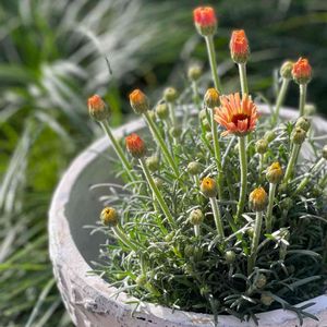2年目のローダンセマム ムーン☻* 蕾がいっぱい上がってきました! 冬にバイバイしなくて良かったぁ(*´꒳`*) お花はオレンジから白に変身します♡ 蕾もオレンジ色で可愛いです🍊