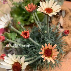 エム•アンド•ビーフローラさんの ローダンセマム ムーン 咲き進むと黄色から白に変わるらしい 💛🤍 花が真上を向いてて写真撮りにくいです💦