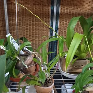 (2023年4月20日 10:35頃 撮影:Galaxy A53) ミニカトレア組・・・。水遣りの為に移動してきて。一応、パッと見たところ、まだ植え替えは良いかなと思うんだけど・・・・。胡蝶蘭の方は色んな病気が出ててんやわんやだけど、コッチはまだどうも・・・。 花が終わると緑の観葉植物状態ですわ。