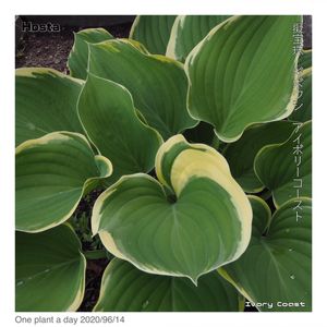 One plant a day. Hosta ‘Ivory Coast’ ホスタ アイボリーコースト 2017年 ホームセンターで購入。 明るい覆輪斑が綺麗な大きくなる品種。年々大きくなります。