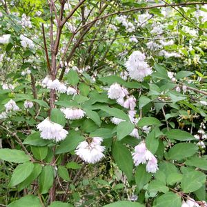 フサフサのサラサウツギ🤍 ほんのりピンク色🩷が やっぱり 可愛いなぁ😍 実家の庭にて