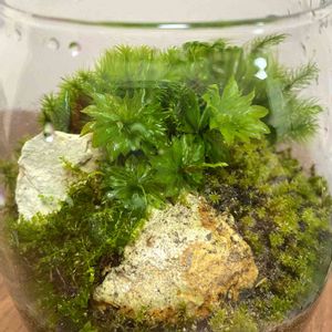 コケ達をコルクに活着しました。 高さ約9.5㎝径約4.5㎝の小さな苔テラリウムです。 ガラス蓋をはずしてトリミングが出来るので、メンテナンスも簡単です。 メルカリアプリより、キーワード「kokesouka」にてご検索可能です。