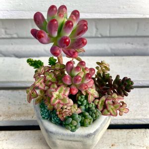 こんにちは〜 うちの寄せ植え紹介の続きです。 ポスト下セダム畑で、小さいバケツに入れてたので、めちゃくちゃ葉が小さく育った(通常の半分くらいの葉の大きさです)リトルミッシーを植えかえるついでに作ったミニミニ寄せ植え。 鉢の直径は4cmです。 そんなに頑張って作ったわけではないのですが、このミニミニ感が、ちまちま屋のお客様にかなり好評です。 乙女心も、鉢が小さいからか、ちんまりとしたまま形が整ってますねえ… ミニ鉢の寄せ植えは、うまく育つと多肉が小さいまま成熟するのが面白いです。 盆栽的な感じですかね。 作った時の様子は 🏷はなずきんミニミニ寄せ で見られます。