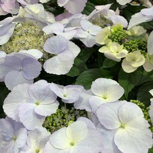 こんにちは😊 もう一つ紫陽花 スプリングエルフィン💕 真っ白に見えた紫陽花が目を惹きました😍 普通の紫陽花と違い常緑で5℃以上が必要な冬は室内夏は日陰です 冬に咲いた花を3月までに通常通り切れば6月にもう一度咲くそうです😊 鉢で楽しむ早咲き紫陽花だそうです💕