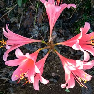 畑の片隅に咲く 夏水仙 あつさに 負けずピンクの花を 咲かせて畑仕事を 応援してくれてます