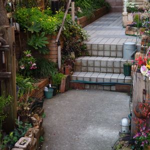 ◆箱庭全景 最近サボり気味なので 散らかっておりますが 奥行きだけは長~くて 植えてある場所の幅は 50~60センチの箱庭です... 花は少ないですが やっと緑が増えてきました。