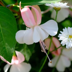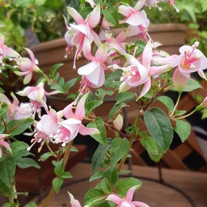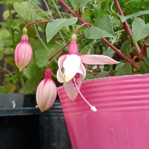 2種類のフクシア 小さいから ハンギングバスケットに入れてみました(* 'ᵕ' )☆ まぁちゃん🥀 気に入ってくれるかしら?