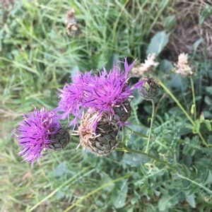 山道にて…⑥ 山頂に咲いてました。 アザミとそっくりさん。でも葉っぱが全く違うのですぐわかります。 スーッと伸びた茎の先に咲いた花がゆらゆら揺れてて、丸みのある葉っぱ、アザミとは違う優しさを感じました🎵