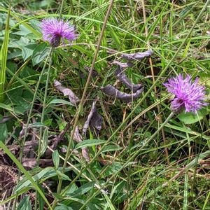 瞬時に回答をいただきました。すごい!😆 真理さんからでした✨ 9月上旬、高尾の一丁平で見つけました。タムラソウですねー😊 おもしろい花のつくりしてますねぇ🌟 周りはたくさんのノハラアザミ。 タムラソウはこの一本しか見当たらずでした。
