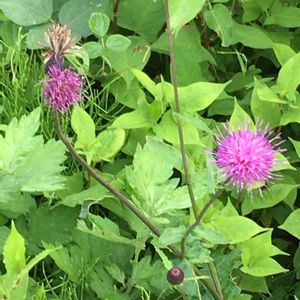 散歩してたら出会いました🥰 ずっとアザミだと思ってましたが😅 以前のGSでタムラソウと知りました🤗 アザミ属のような刺はないんですね。 お花は葉もよく見ないといけないと 学びました🎶♬ キク科タムラソウ属