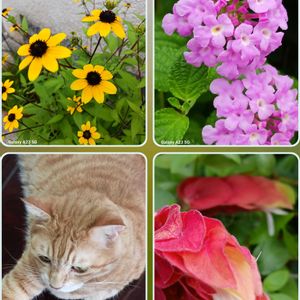 こんにちは👋😃 今日も☀😵💦みーちゃんもクーラーの風が当たるテーブルの上が好きです🐱可愛いお花とコラボしてみました❤