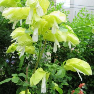💚💛コエビソウ🤍💚 知り合いからもらったコエビソウ、 他の花はこの暑さ🥵で、だめっぽいゲド、コエビソウだけ元気。しっかり根づいて増えてくれると嬉しい💖 きれいな🤩薄黄色🟡