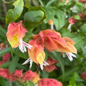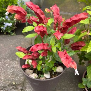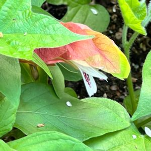 コエビソウ 別名 ベロペロネ キツネノマゴ科 キツネノマゴ属 重なり合う苞が茹でたエビ🦐のようでコエビソウの名前はピッタリですネ! 苞から咲く花はシャコの顔に見えてしまって笑っちゃいます🤭 そう言えば最近は寿司ネタにシャコは見ませんネ… 今年はたくさん咲いてます🦐🦐🦐🦐🦐