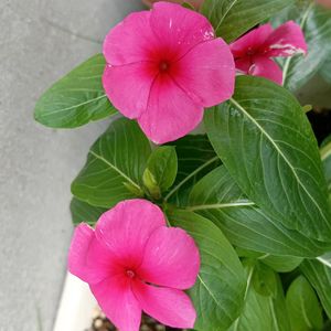 雨で2日間庭に出てなかったら、咲いてました。 ①…種まきしたニチニチソウ ②…冬越ししたコエビソウ(ちょっとピンボケ)