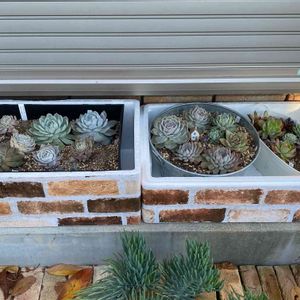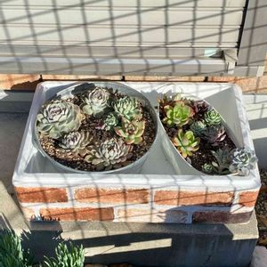 それでも懲りずにもうひとつ作ってみました💧 微妙に隙間があるのが気持ち悪いけど、仕方あるまい…😑 そもそも多肉植物の植え方が大雑把なので、綺麗な寄植えをされている方からしたら、それ以前の問題😅