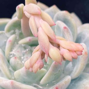 おはようございます😊 珍しい(わたしにとって)多肉を見つけて、ポチってしまいました💧 ほんのりピンクの葉っぱが可愛くて💓 忙しくて、送ってもらった形状のまま… 寒さに弱いということで、南向きの窓辺の特等席を陣取っておられます😆