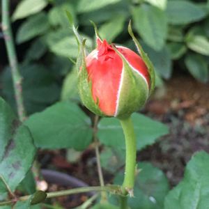 今朝の薔薇🌹 新苗なんですがどうしても咲いた姿が見たい💦 最初のつぼみは枯れました😱諦めていたらまたつぼみが付いていたので 見守り中🥀咲いてくれるかしら 暑くてつぼみのまま咲かないのもあるんですよ😓 葉っぱも黒点病が出てきたよー💦お薬撒かなくちゃ🌿 モルゲンロート オレンジの🍊🌹