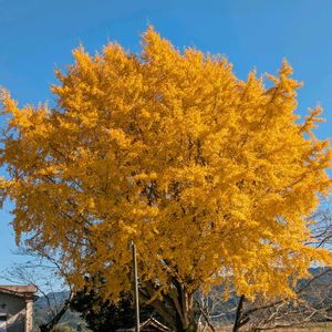 いつものお出かけ いつもより1つ前の交差点で右折してみたら すごく紅葉の綺麗な 大きなイチョウの木に遭遇😍 Uターンして、車から降りてパチリ🤳