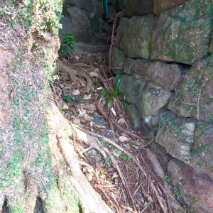 いつ頃からあるのか。 奥へと続く古い石の階段。 大木の根に侵食され、消えつつあります。