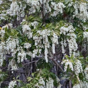 今日のお花 アセビ 馬酔木 アシミ アシビ アセボ アセミ 毒柴 ヒササキ 色々な呼び方あります 日本原産 有毒 ①②23/3 お墓参り時 過去pic ③④ご近所散歩 ⑤ ご近所散歩 上と別のお宅 後ろの木は金木犀