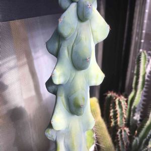 おはようございます😃 昨日はめっちゃ暑くなったと思ったら 雷⚡️と豪雨 多肉にもなかなか辛い お天気です💦 さて今日は🏷棒の日 ウチの棒と言ったらこの子かな😁 Myrtilocactus geometrizans 竜神木 で参加させて頂きます🎶 前回pic1月の見てみたら、めっちゃ 伸びてる😳😳😳 徒長かな⁇ もっと太い方が可愛いんだけどなぁ😅