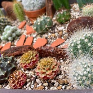 まだ乾かしてるコ居るけどやっとポジション決まった😆一度にたくさんのサボテンが見れる盛りだー✨✨ レンガも色変えねば✨
