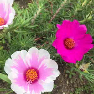 花壇でかわいいマツバボタン に出逢いました〜💖💕💕 ふりふり💖が、とってもキュート💖 癒される〜(๑>◡<๑)