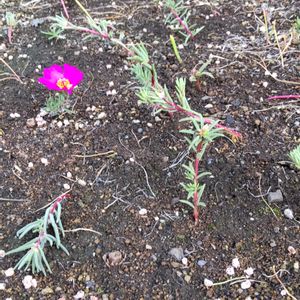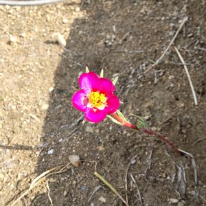 花壇で、挿し木したマツバボタンが咲きました。 土に穴を開けて挿しただけですが、もう咲きました。